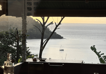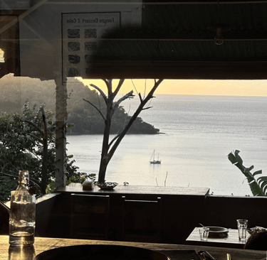 Menyeruput kopi, menatap laut, mendengarkan angin,